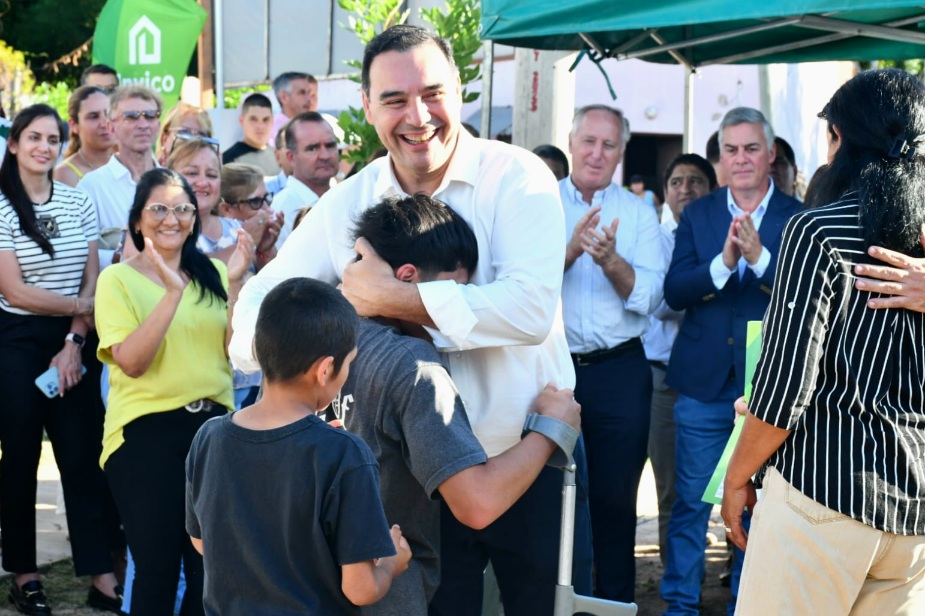 Luego comenzó la actual gestión del presidente Javier Milei, que “no cree en la construcción de las viviendas”, dijo, pero “una vivienda hoy cuesta 110 millones de pesos, así que nosotros tomamos ese guante”, comentó el primer Mandatario. Ante ese panorama, “pusimos los recursos y tomamos la responsabilidad que era del Fondo Nacional de Viviendas, quienes habían dejado estas casas en un 33% de su construcción, así que las terminamos”.