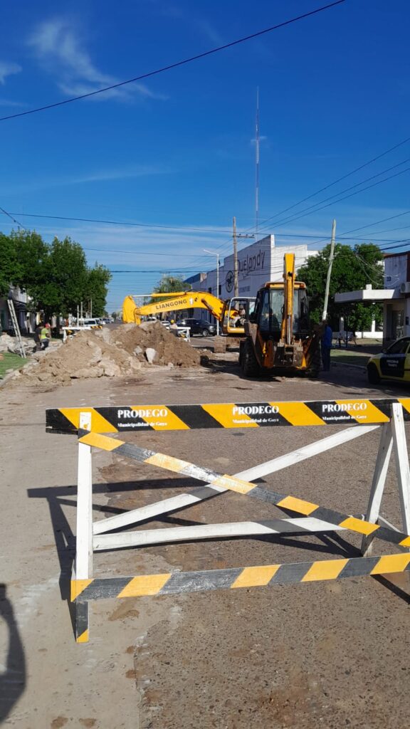 Una significativa obra de infraestructura hidráulica se ejecuta en la intersección de avenida Madariaga y calle Yapeyú, donde equipos del PRODEGO y la Secretaría de Obras y Servicios Públicos de la Municipalidad de Goya avanzan en la reparación de conductos pluviales que provocaron el hundimiento del pavimento.