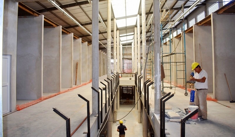 Con un importante avance de obras el Gobierno Provincial continúa la construcción del nuevo edificio del “Mercado Ex Vía”, que prevé en esta segunda etapa la infraestructura para 86 locales comerciales y la instalación de pórticos y escaleras de acceso.
