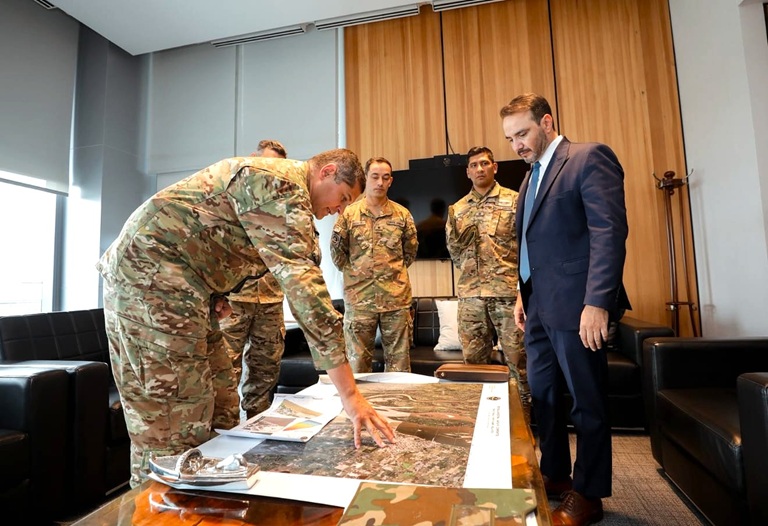El gobernador de Corrientes, Juan Pablo Valdés recibió este miércoles en el Centro Administrativo de la capital provincial al Comandante de la Primera División de Ejército, General de Brigada Guillermo Mander y al Jefe del Batallón de Ingenieros Anfibios 121, Teniente Coronel Pablo Campi para analizar «en profundidad distintos aspectos territoriales, logísticos y técnicos» del proyecto del cruce de balsas entre Bella Vista – Villa Ocampo para unir de este modo a las provincias de Corrientes y Santa Fe, afirmando que este avance «será un hito estratégico para el desarrollo económico de la región».