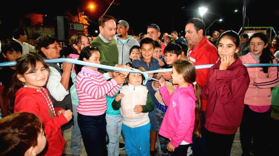 Para dejar formalmente inaugurada las obras de revalorización, el Intendente Mariano Hormaechea, junto a los funcionarios, concejales, presidente del barrio, vecinos y los niños hicieron el tradicional corte de cintas, para luego transitar por el espacio revalorizado y encender las luces, nueva luminaria del Playón Deportivo.