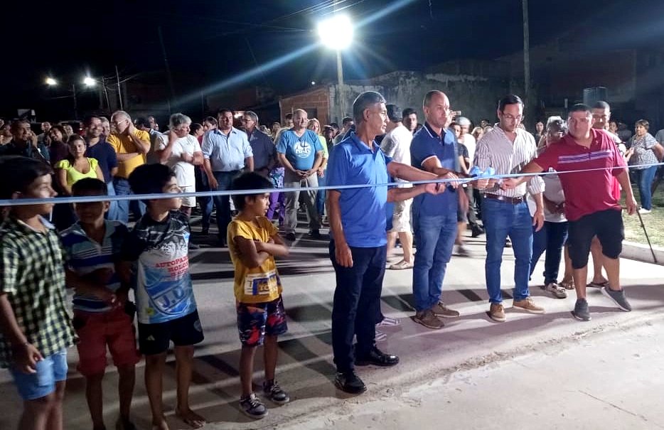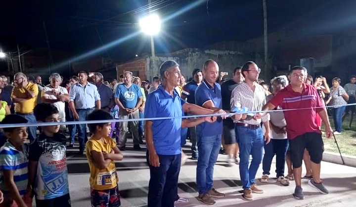 Posteriormente el Intendente, Viceintendente, funcionarios, legisladores, concejales y vecinos procedieron al tradicional corte de cintas, dejando inaugurado el pavimento en hormigón armado en el Barrio Aro Iris.