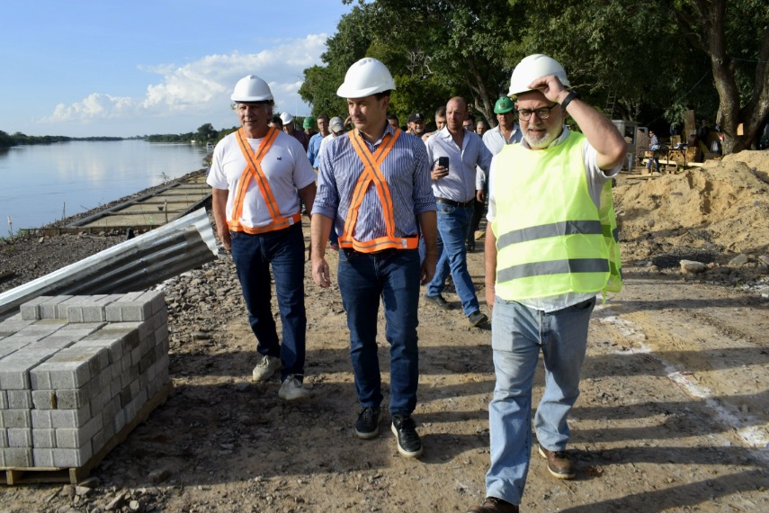 Por su parte, el intendente comentó: “Se ha avanzado mucho, hemos podido observar este trabajo, reflejando la decisión del Gobierno de la Provincia, del gobernador, no solo para reparar los 40 metros llevados por el río, sino esta costanera moderna que marca un antes y después, con un espacio inclusivo, con el río como protagonista. También recuperar los espacios públicos, en eso se inscribe el convenio firmado con Prefectura para complementar desde ese galpón, tener otro espacio, y con recursos de la Municipalidad, con el PRODEGO, y con el aporte de máquina vial de la Provincia, consolidar, dar seguridad a la parte del muelle, restaurar ese lugar, abrir el portón y tener así otro espacio recuperado”.