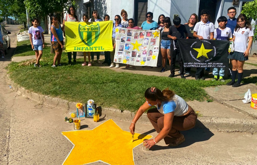 En este caso el emotivo gesto en memoria de Alexis Escobar, de 13 años, se realizó en la intersección de las calles José María Soto y Uruguay, del barrio La Rotonda de nuestra ciudad.