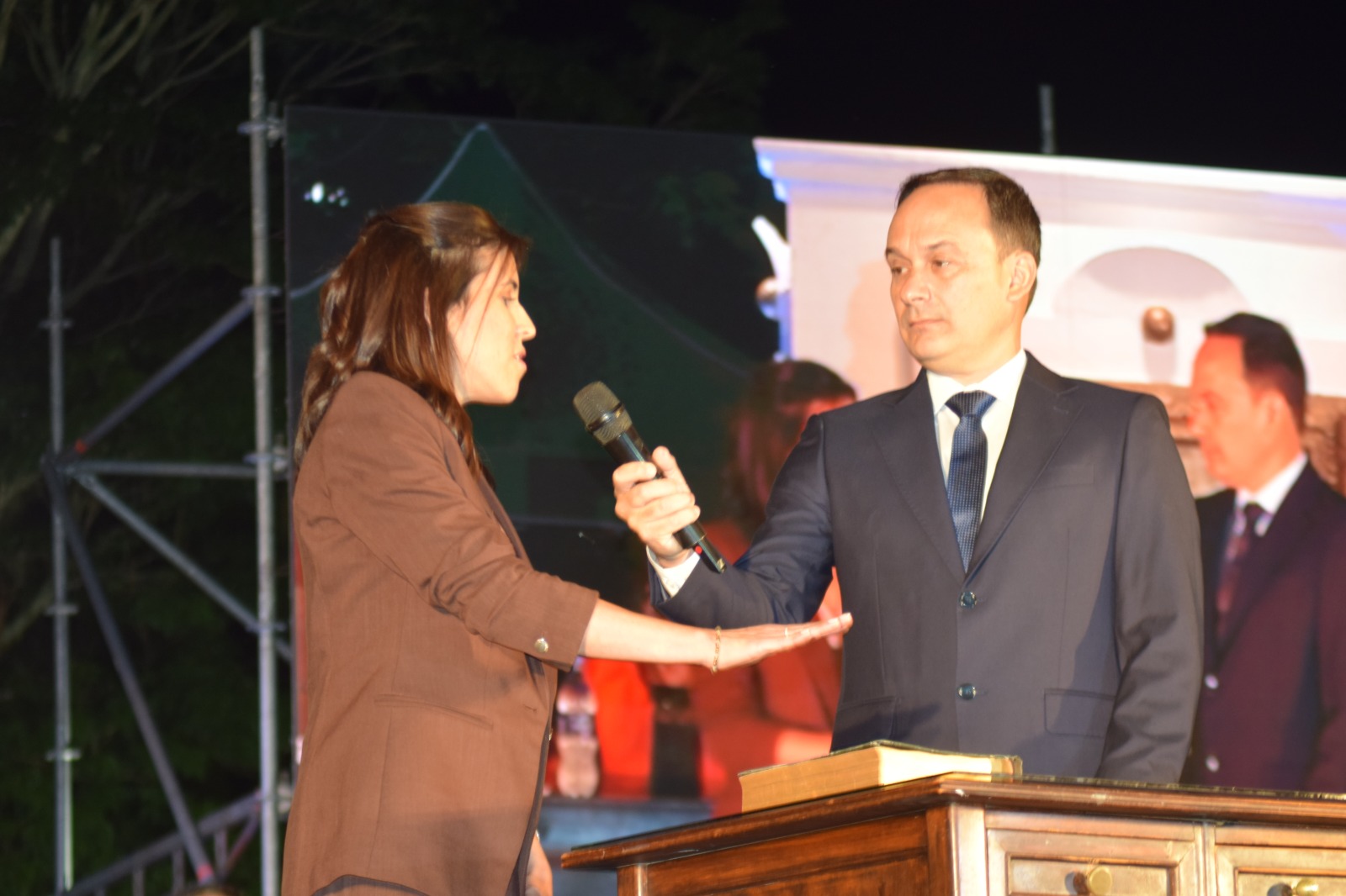 El intendente y viceintendente consagrados en las elecciones del pasado 31 de agosto, así como el gabinete que acompañará la gestión por el periodo 2025-2029, prestaron juramento en un acto protocolar realizado en la plaza Mitre, este martes 9 de diciembre desde las 20 horas.