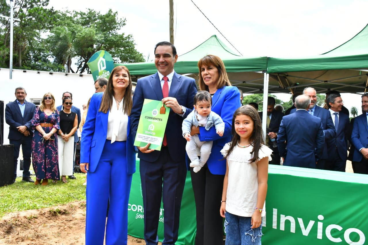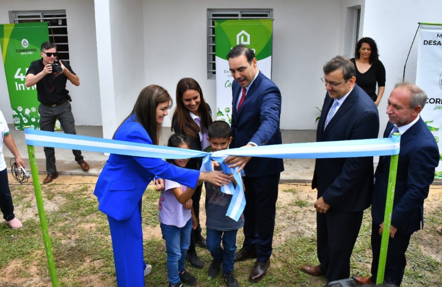 El gobernador Gustavo Valdés encabezó este martes en Santa Ana la entrega de 10 nuevas casas del programa Oñondivé y 3 del programa Esfuerzo Propio y Ayuda Mutua (EPAM), 13 en total. En la oportunidad, habilitó además una pileta comunitaria para niños y rubricó un acuerdo para la ejecución de 10 soluciones habitacionales más y la construcción del Polideportivo municipal.