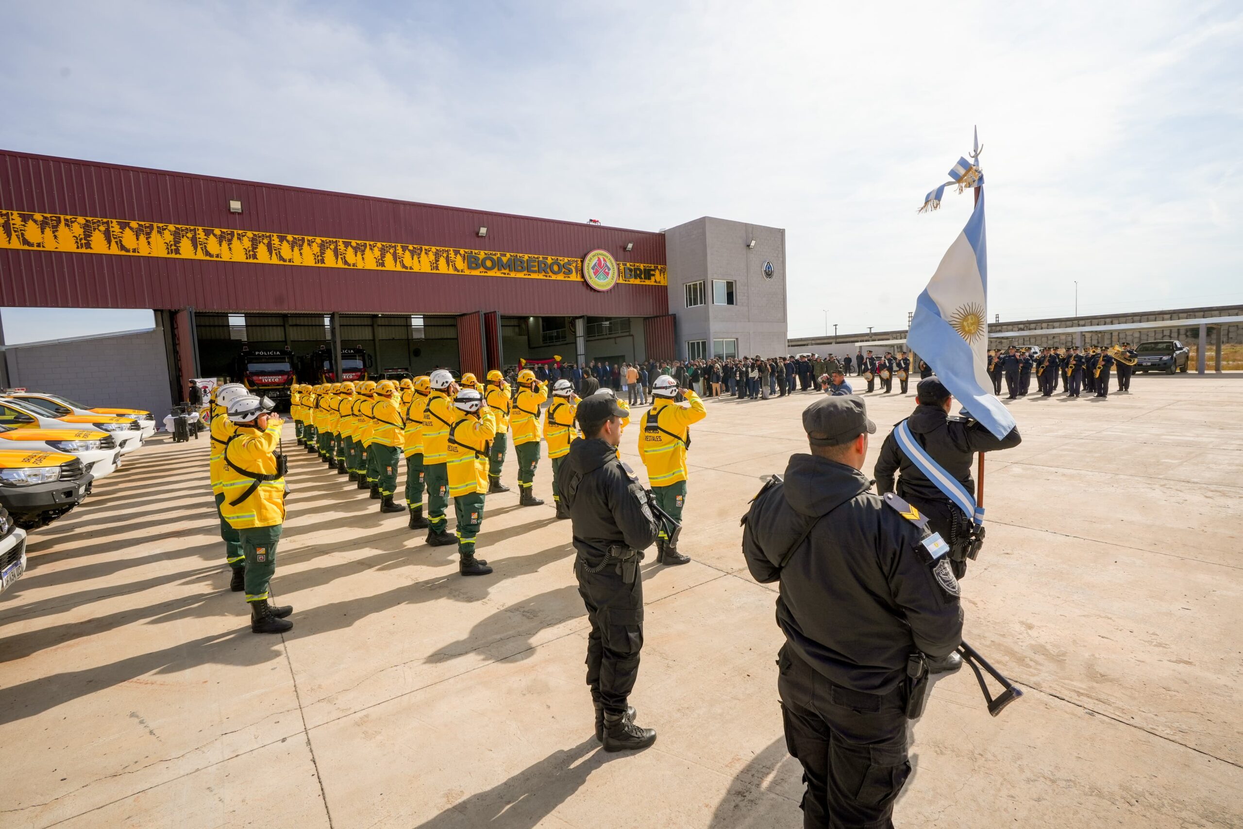 En la oportunidad, la infraestructura del cuartel fue diseñada bajo estándares de primer nivel, posicionados a la vanguardia en todo el territorio nacional, siendo pioneros en seguridad e infraestructura hasta el momento en el país con este poder tecnológico y logístico con tanques de abastecimiento de 120.000 litros para abastecimiento y red de incendio, sistema de cámara de videovigilancia, alarmas sincronizadas con monitoreo y emergencias para el 911, alerta temprana, estacionamiento interior, 10 camionetas, 5 autobombas forestales, áreas de maniobra para entrenamientos profesionales.