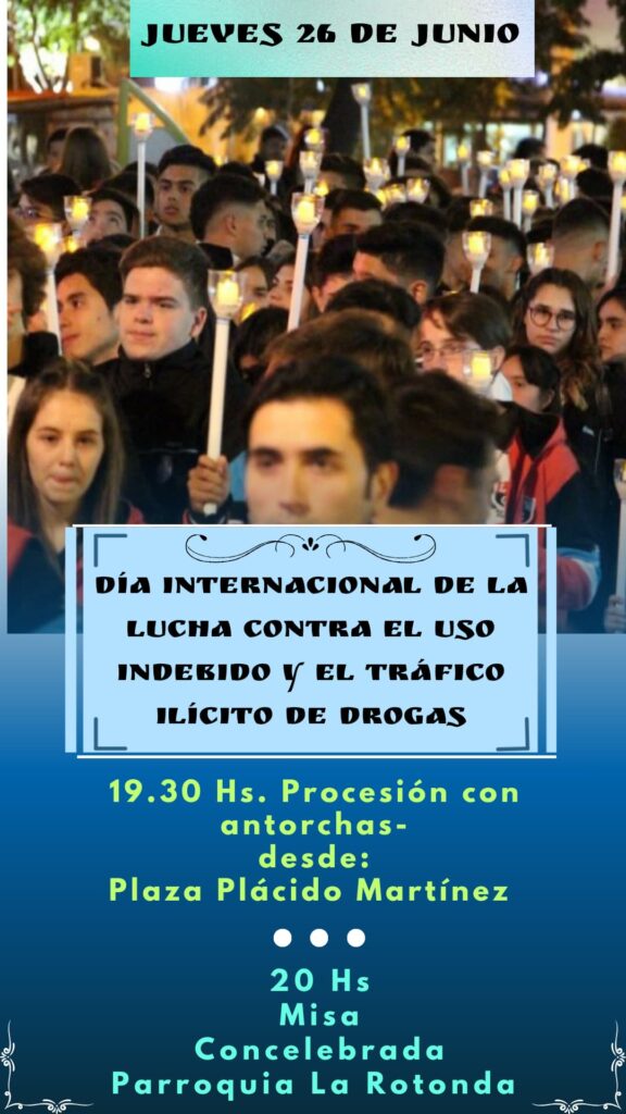 Consultado sobre la celebración y bendición jubilar del jueves 26, para el ámbito de los educadores, el sacerdote señaló: “Una feliz coincidencia, un signo del Espíritu, de antemano establecimos ese día dedicado a los educadores, en la tarea de iluminarnos, de librarnos de la oscuridad, de allí el origen de la palabra alumnos (sin luz); y el maestro es quien comparte su luz. La feliz coincidencia es que los sacerdotes de Goya nos pusimos de acuerdo para realizar una expresión al día internacional de la lucha contra el uso indebido y el tráfico ilícito de drogas, y se nos ocurrió concentrarnos en plaza Plácido Martínez para entregar un Documento a las autoridades de Goya, porque esta situación nos compromete a todos. Como representantes de los ciudadanos se decidió entregar esa proclama. Nosotros, en medio de la oscuridad (las adicciones), marcharemos con luz desde esa plaza hasta el templo parroquial de La Rotonda, contra las tinieblas, nosotros los goyanos intentamos poner la “Luz” ante una situación muy difícil”.