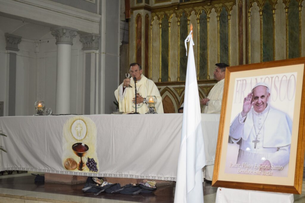 Finalizada la misa, en el atrio del templo catedralicio “Nuestra Señora del Rosario”, monseñor Adolfo Canecín saludó por el tiempo pascual y recibió las condolencias por la partida a la Casa de Dios de Francisco.