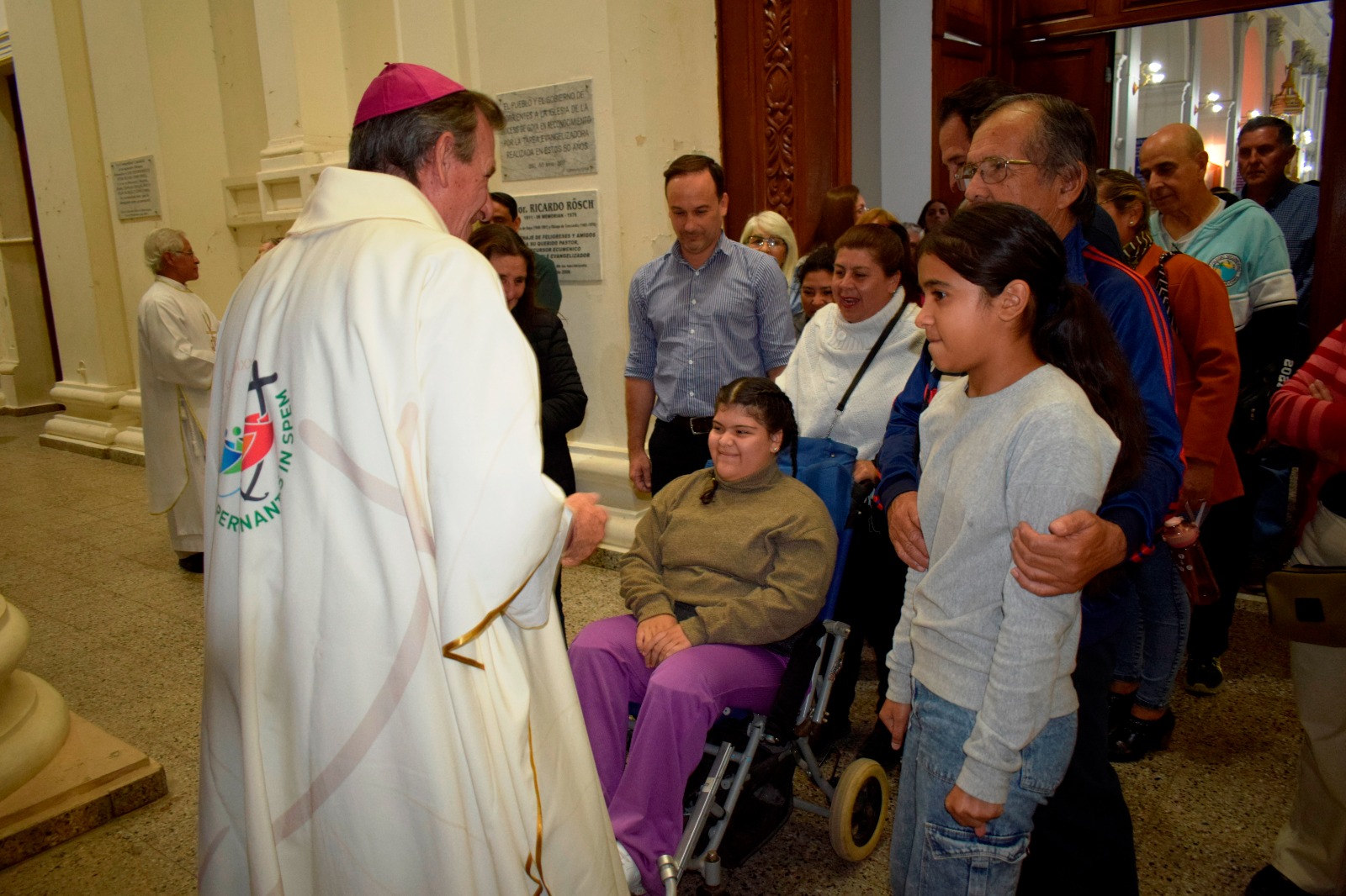 Finalizada la misa, en el atrio del templo catedralicio “Nuestra Señora del Rosario”, monseñor Adolfo Canecín saludó por el tiempo pascual y recibió las condolencias por la partida a la Casa de Dios de Francisco.
