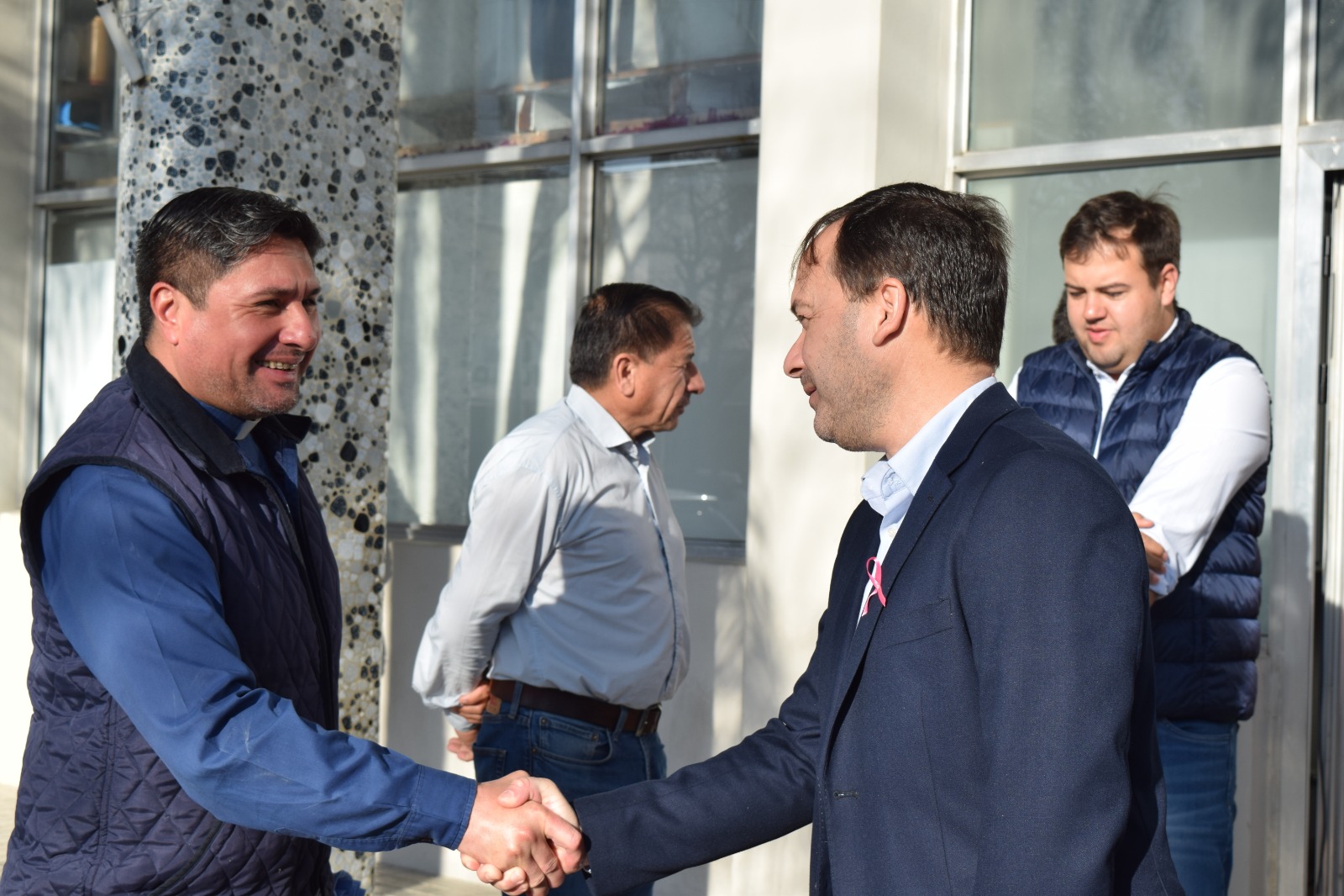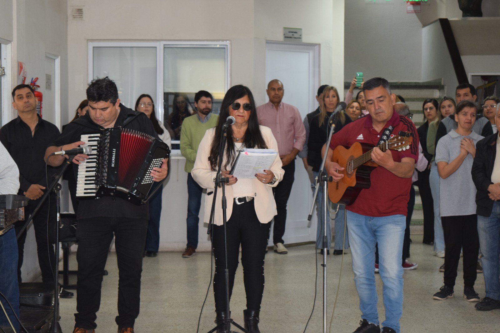 El intendente Mariano Hormaechea, acompañado por funcionarios, concejales y personal de distintas áreas, recibió a la Virgen con un saludo cargado de fe y esperanza. La imagen arribó junto al párroco de la Catedral, padre Ariel Giménez, y fue acompañada por cánticos y música en vivo interpretada por Alberto Machuca en guitarra, Betty en la voz y “Tuky” Ortiz en acordeón.