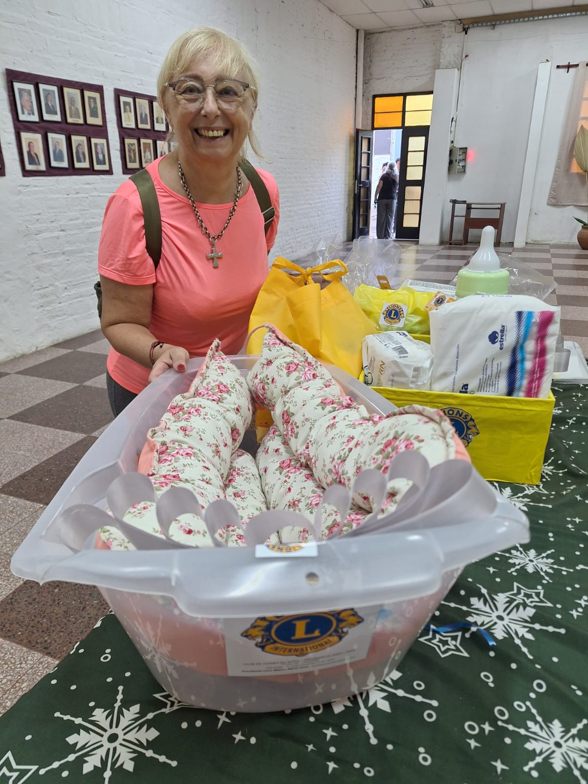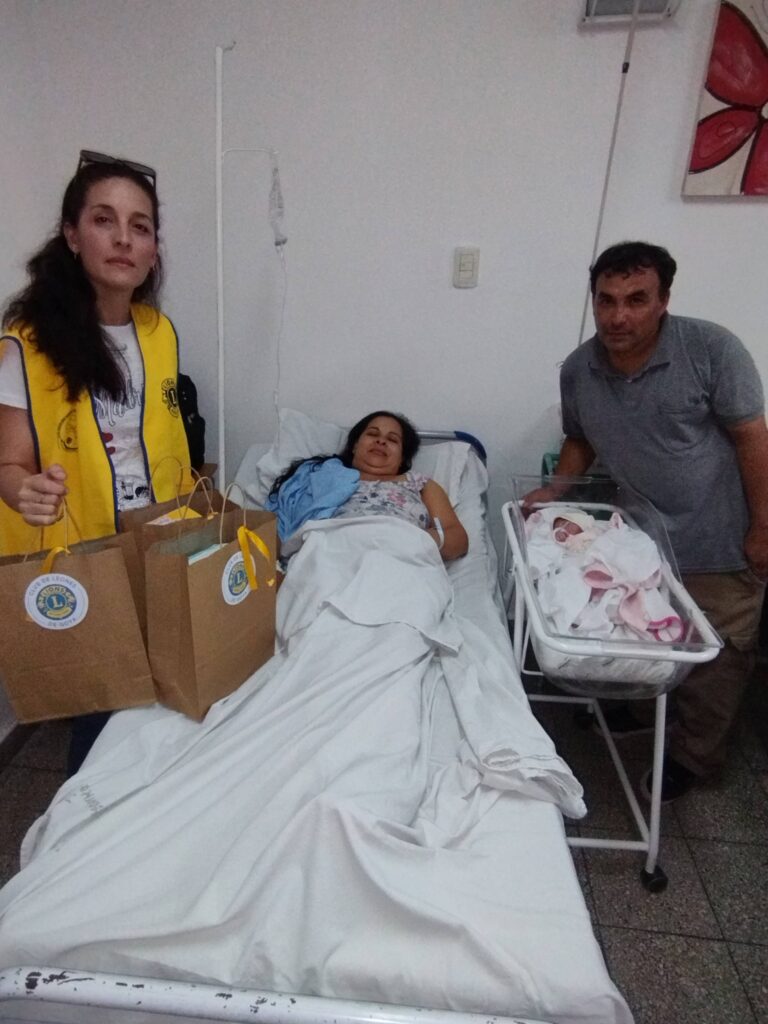 El Club de Leones tras la campaña realizada con sus asociados y el aporte de la comunidad hizo entrega del ajuar, destinada a la recién nacida.