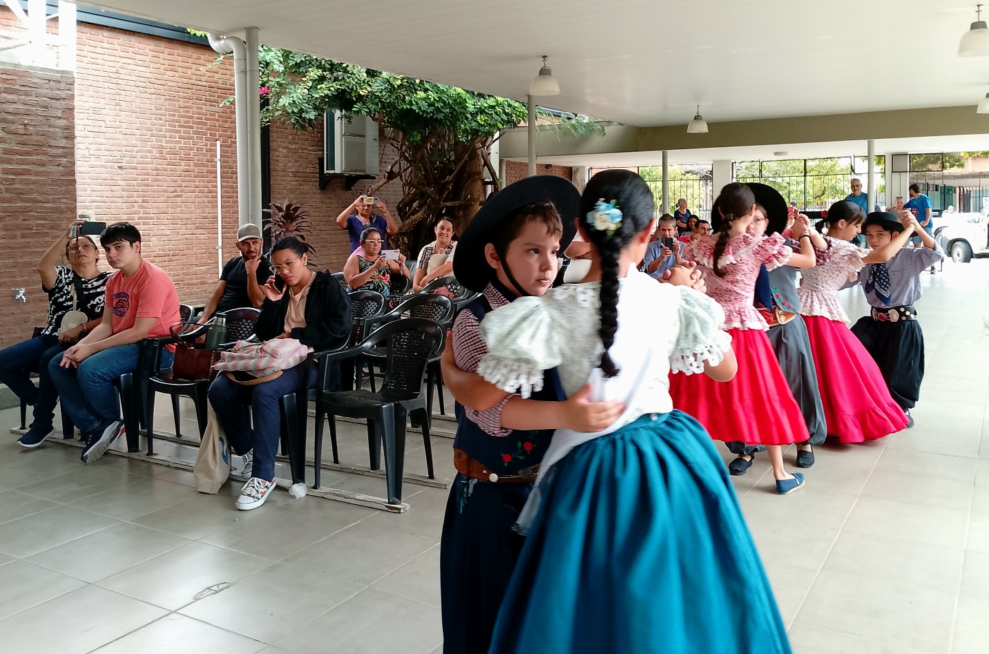 Muestra inspirada en la vestimenta tradicional del correntino. Espectáculo de música y danza en vivo.