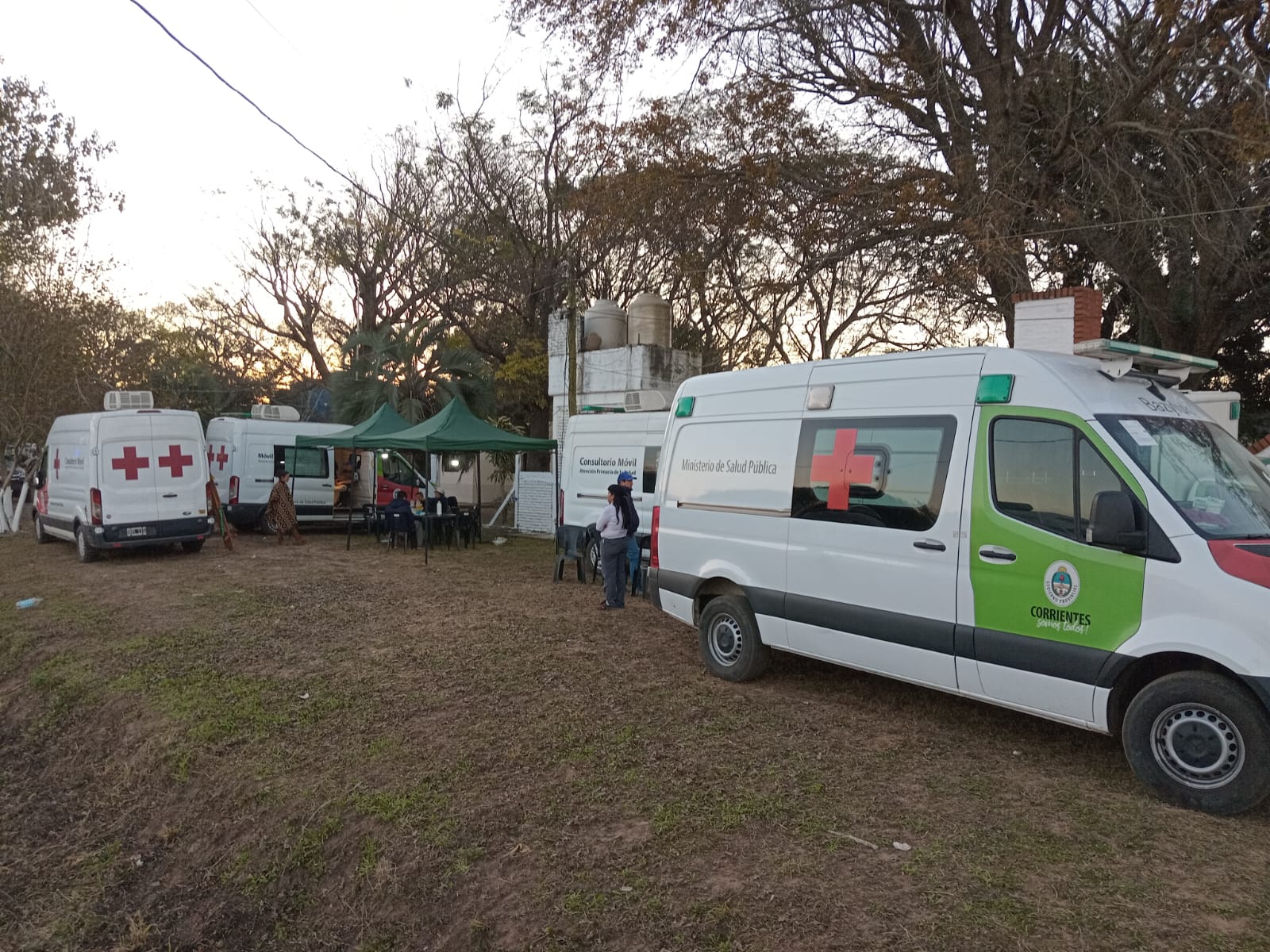 Para este operativo sanitario se pusieron a disposición consultorios móviles y ambulancias de los Hospitales de San Luis del Palmar, Santa Ana, Paso de la Patria, Itatí y del Hospital de cabecera de San Cosme, además de los Centros de Salud de Ingenio Primer Correntino y Ramada Paso, donde hubo ambulancias de la DES, personal médico y enfermería de refuerzo.