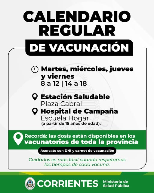 Se recuerda que las dosis están disponibles en los vacunatorios de toda la provincia. Concurrir con DNI y carnet de vacunación.