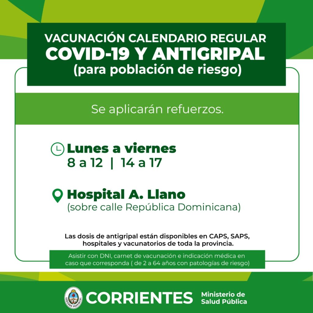 En la capital, las dosis antigripales están disponibles en los Centros de Atención Primaria de la Salud (Caps), en las Salas de Atención Primaria de la Salud (Saps) de la Municipalidad de Corrientes y en los vacunatorios de los hospitales Ángela I. de Llano y pediátrico Juan Pablo II. En tanto, en el interior las dosis están disponibles en los distintos vacunatorios.