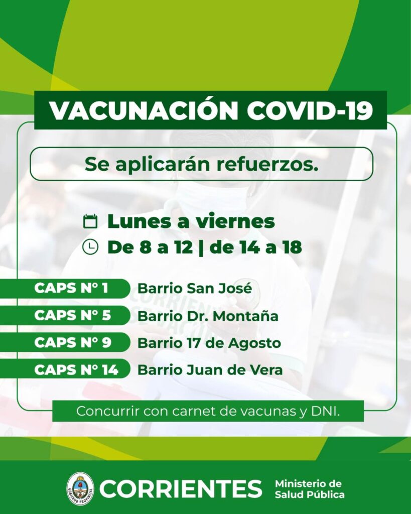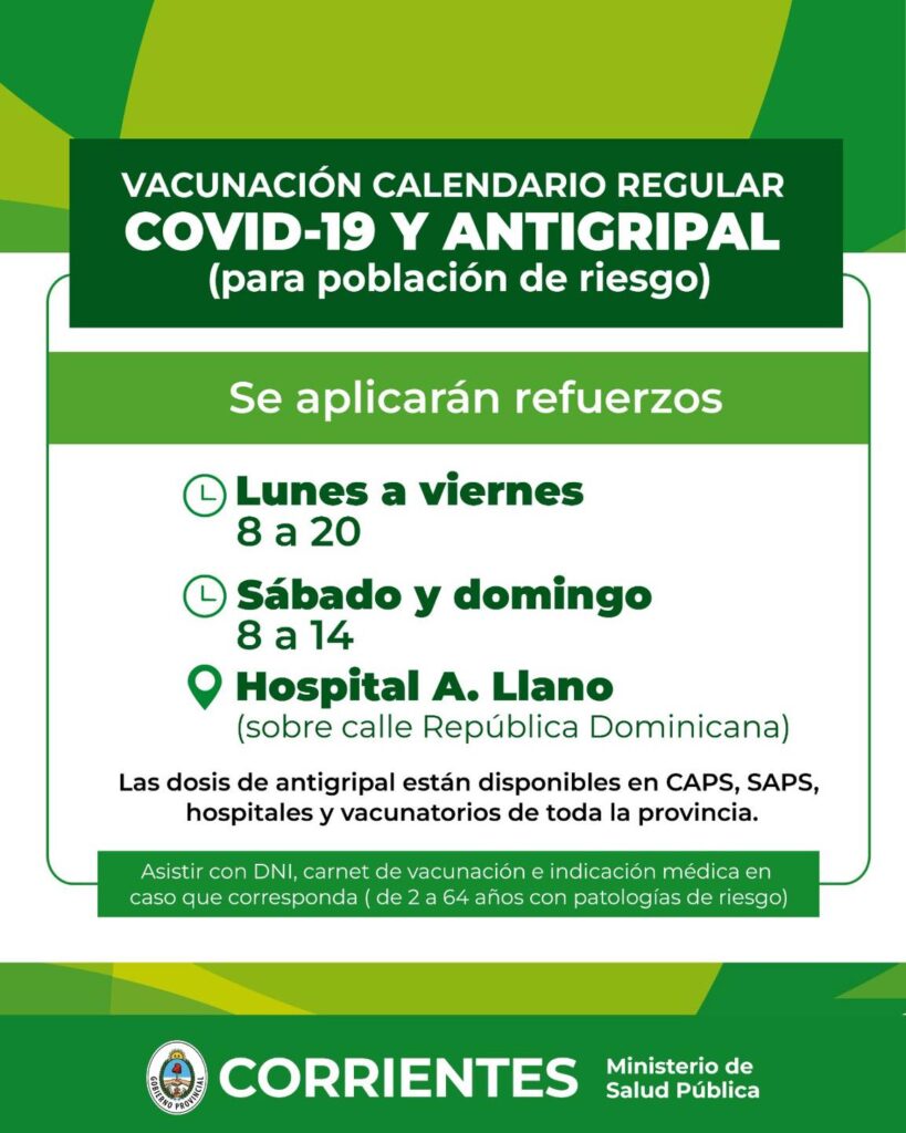 En la capital, las dosis antigripales están disponibles en los Centros de Atención Primaria de la Salud (Caps), en las Salas de Atención Primaria de la Salud (Saps) de la Municipalidad de Corrientes y en los vacunatorios de los hospitales Ángela I. de Llano y pediátrico Juan Pablo II. En tanto, en el interior las dosis están disponibles en los distintos vacunatorios.