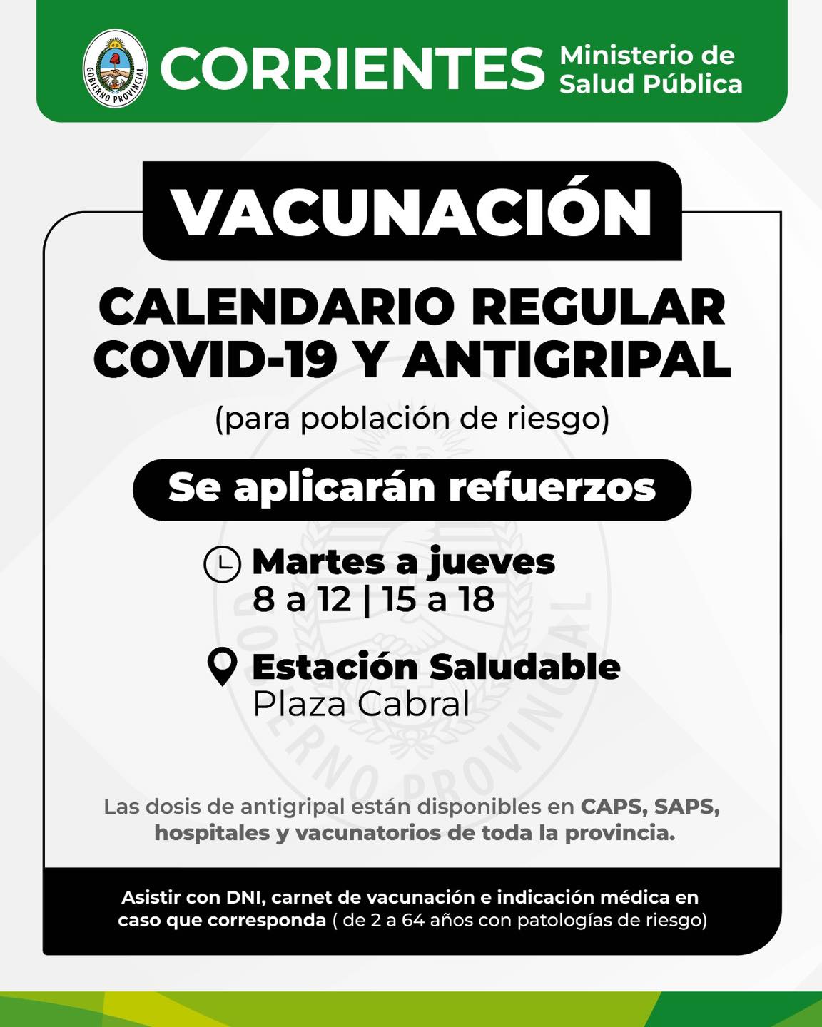 El Ministerio de Salud Pública de la Provincia, a través de la Dirección de Inmunizaciones, recuerda quiénes deben recibir la vacuna antigripal y refuerzos por Covid-19. Además, se insiste en completar el calendario de vacunación: las vacunas son gratuitas y están disponibles en los centros de salud con vacunatorios.