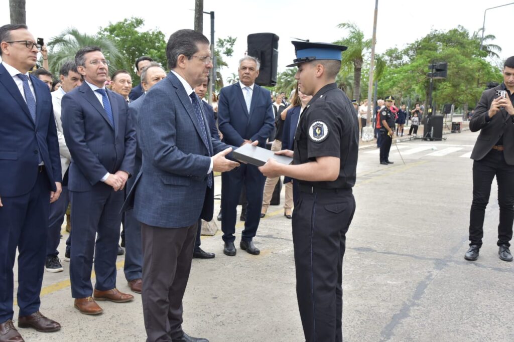 La ceremonia incluyó el pase de revista, el Himno Nacional y un homenaje a los policías caídos en cumplimiento del deber. En el marco del evento, el Vicegobernador entregó una distinción a Carlos Andrés Maidana por su destacada labor en la fuerza.