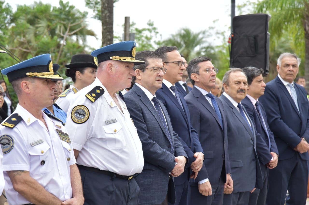 El vicegobernador Pedro Braillard Poccard presidió este miércoles el acto por el 204° aniversario de la Policía Federal Argentina, realizado en la avenida Costanera Juan Pablo II y Las Heras, junto al Comisario Mayor Lionel Julita.