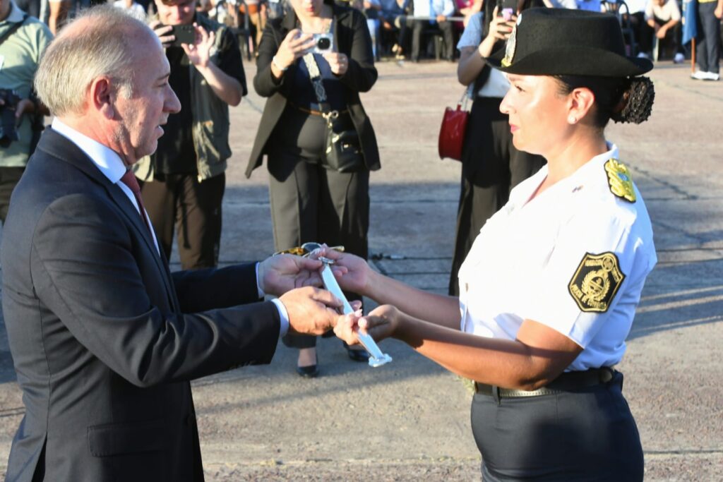 Finalmente, puso en valor la inversión del Estado provincial en la fuerza y la formación de sus integrantes. “La Provincia ha invertido en ustedes, en su formación y preparación, y estamos orgullosos de este gran paso que dan hoy”, sostuvo, y concluyó que “la ciudadanía demanda que la Policía esté cada vez más preparada y atenta a los riesgos que nos impone este nuevo tiempo por venir”.
