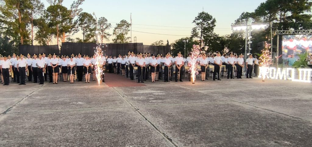 “Es un día de orgullo y celebración para nuestra institución policial”, expresó al tomar la palabra el jefe de la Policía de Corrientes, Miguel Ángel Leguizamón. Remarcó que son 198 los oficiales que están egresando como “técnicos superiores en Seguridad Pública y Ciudadana, por lo cual nos encontramos aquí para reconocer el esfuerzo, dedicación y el compromiso de quienes ahora culminan una etapa fundamental en su formación profesional”.