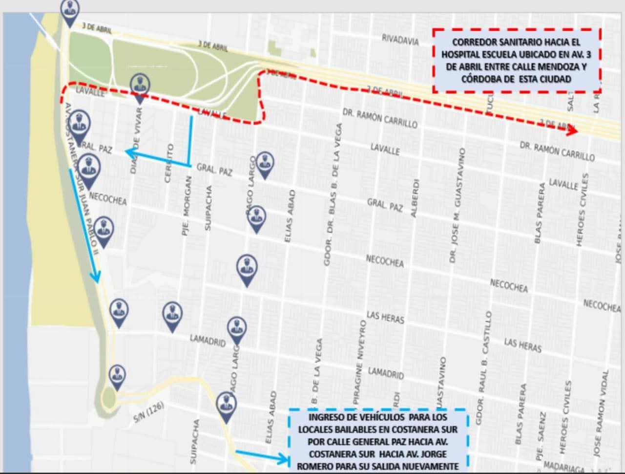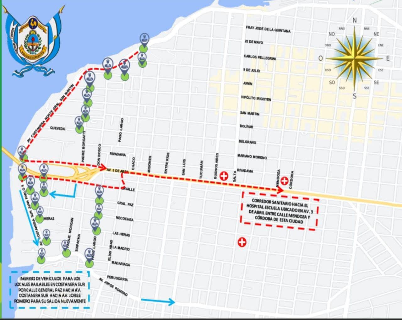 El plan contempla un despliegue de más de 100 efectivos policiales, con fuerte presencia en la vía pública, controles preventivos y restricciones de tránsito en sectores estratégicos. En la ciudad de Corrientes, los días 24 y 31 de diciembre desde las 23 horas, se restringirá el ingreso de vehículos en la Costanera Norte y Sur, así como en los barrios Mitre y Camba Cuá, con vallados, re direccionamiento del tránsito y cobertura especial en plazas y parques.