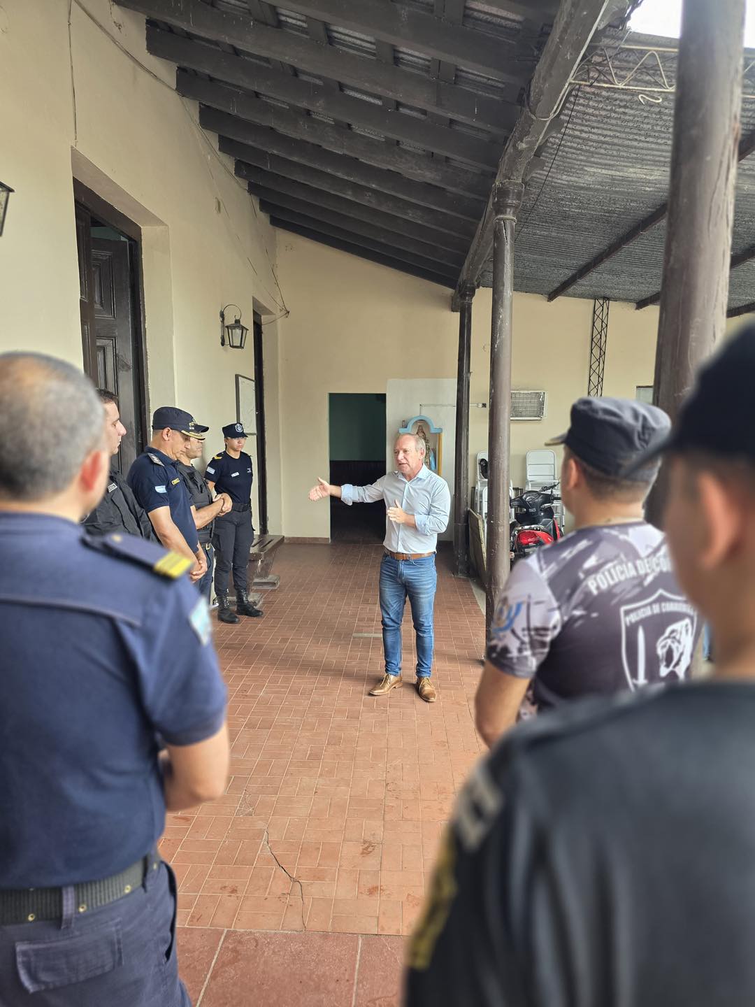 El ministro de Seguridad de la provincia, Adán Gaya por pedido del Gobernador visitó este lunes las diferentes delegaciones policiales en San Luis, con el objetivo de coordinar con los efectivos la asistencia y la ayuda del Gobierno de Corrientes a los afectados por las fuertes lluvias caídas en los últimos días.