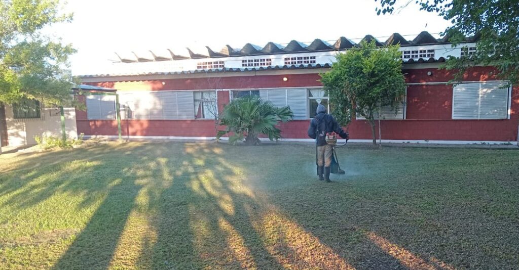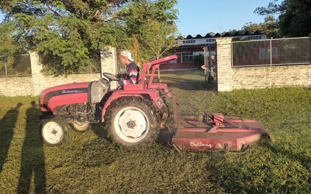Servicios Públicos realizó las tareas de corte de pasto en la mañana de este viernes, en la Escuela de Paraje San Pedro y en el Club Pompeya de Colonia Porvenir.
