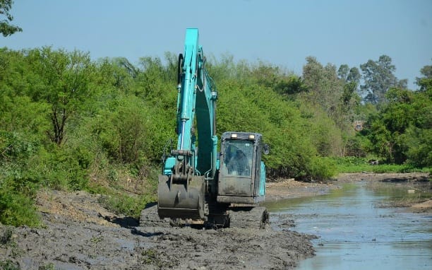 La dependencia continúa realizando distintas intervenciones para proceder a la rectificación y limpieza de más de 70 kilómetros de canales urbanos y subrurales, utilizando equipo excavador montado sobre orugas.