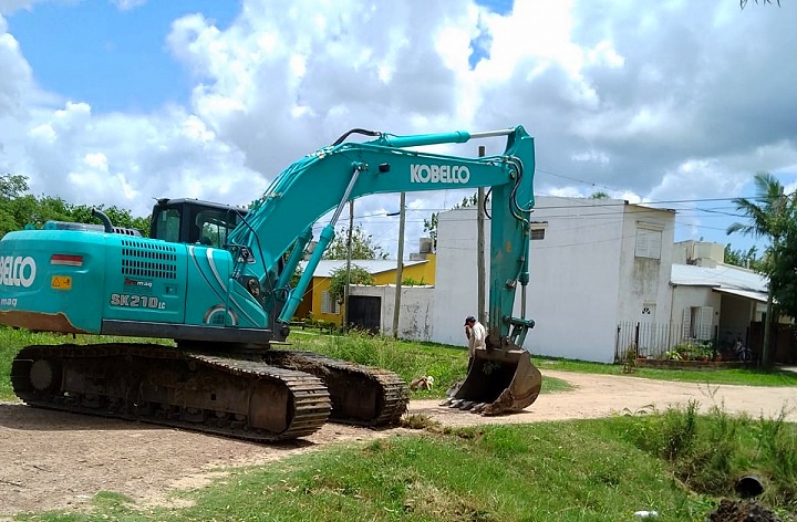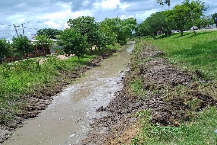 En un sector del Barrio Santa Lucia personal y maquinaria del PRODEGO procedieron a la limpieza de los canales a cielo abierto y en otro espacio del mencionado barrio a la canalización para permitir el escurrimiento del agua.