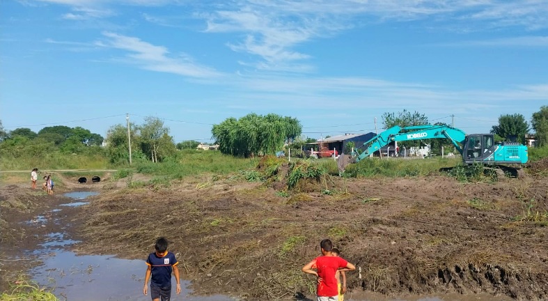 Además, se realizan rectificación de canales secundarios y limpieza de alcantarillas en dicho barrio de la zona Norte de la ciudad. Para dichos trabajos se cuenta con una excavadora montada sobre orugas.