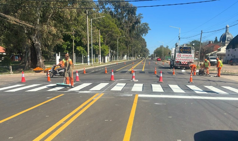 La tarea de marcación de los carriles, delimitación de las sendas peatonales, concluyó con el señalamiento horizontal de la mencionada Avenida.