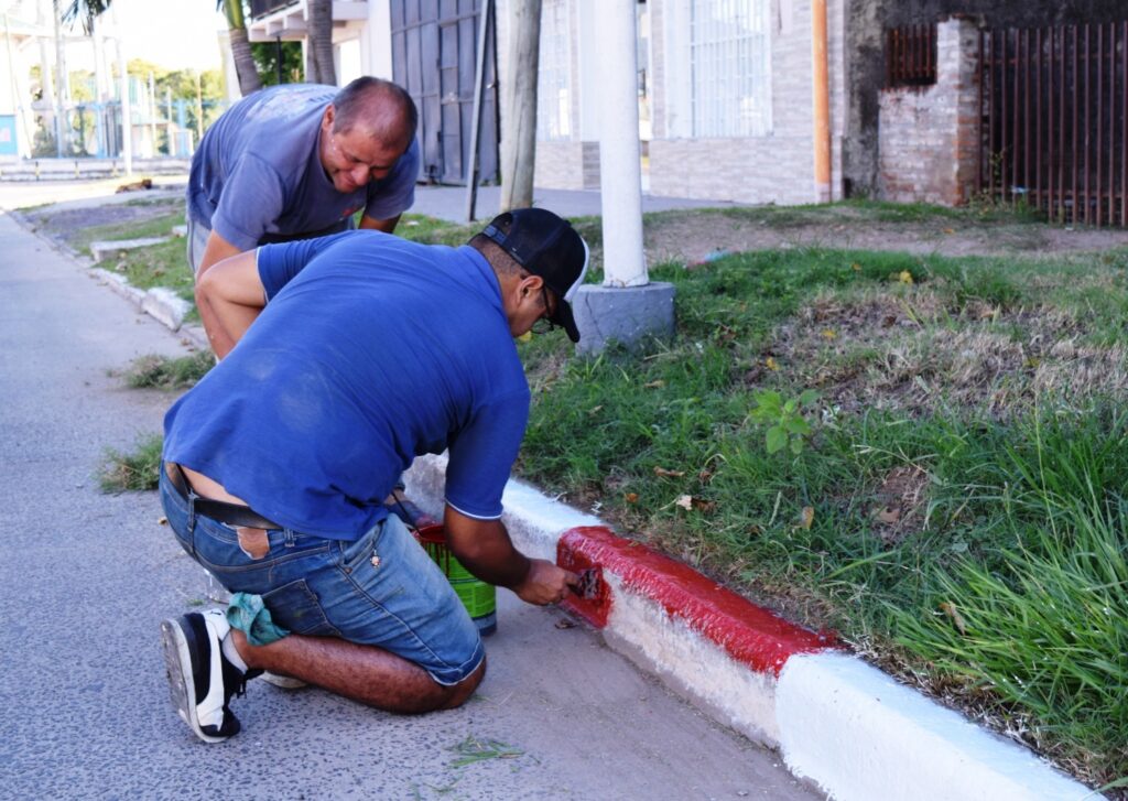 La Municipalidad de Goya, durante la mañana del jueves inició los trabajos de señalización y pintura de los cordones en la Avenida de Los Primeros Concejales.