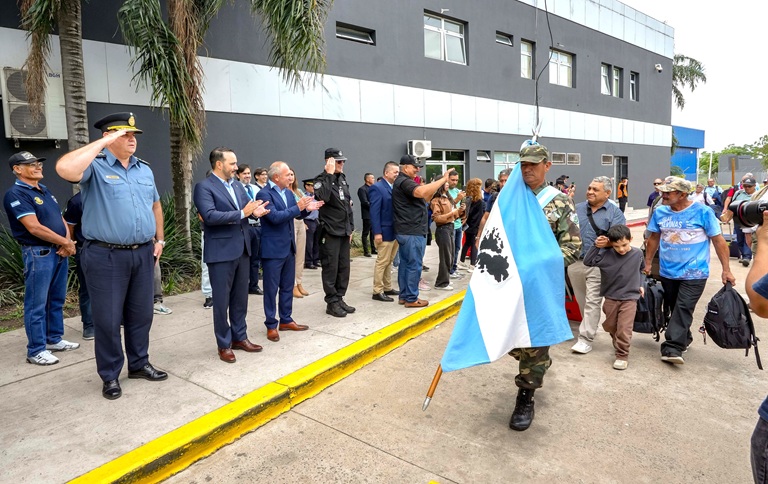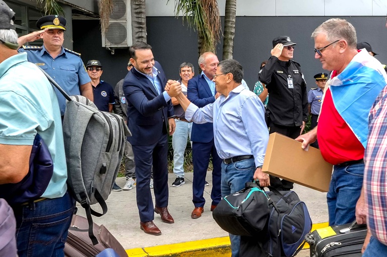 Previo a emprender el traslado hacia el aeropuerto, los excombatientes fueron recibidos en el Ministerio de Seguridad donde el referente de la cartera, Adán Gaya, les deseó un buen viaje, y les manifestó el permanente compromiso del Gobierno provincial con la Causa.