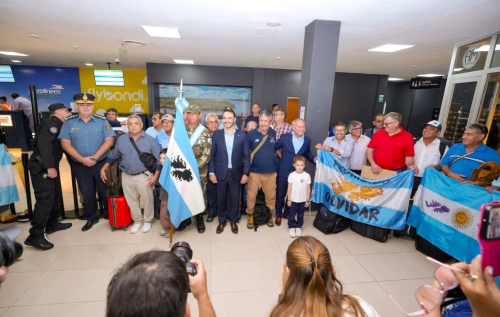 Previamente, alrededor de las 13, la comitiva fue despedida en el aeropuerto por el gobernador Juan Pablo Valdés, quién reconoció a nuestros héroes que lucharon contra el invasor inglés en el conflicto bélico de 1982. «Estamos orgullosos de acompañarlos en este nuevo viaje», fueron las palabras que el mandatario les brindó a los excombatientes previo a un nuevo viaje.
