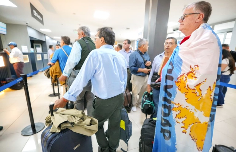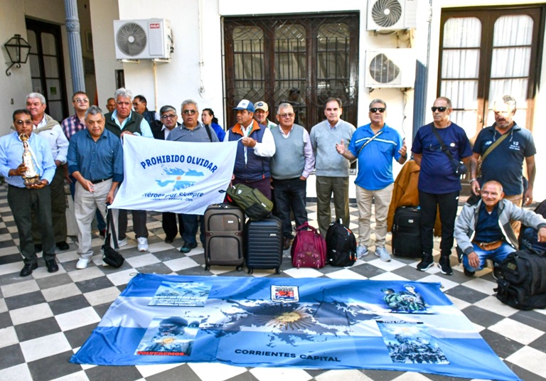 Este viernes a las 15, desde el aeropuerto Piragine Niveyro, partió el contingente de 20 excombatientes correntinos, acompañados por un coordinador y dos periodistas, con destino a las Islas Malvinas, donde permanecerán una semana, en el séptimo viaje de estas características que es organizado por el Gobierno provincial, que impulsa la causa Malvinas como política de Estado.