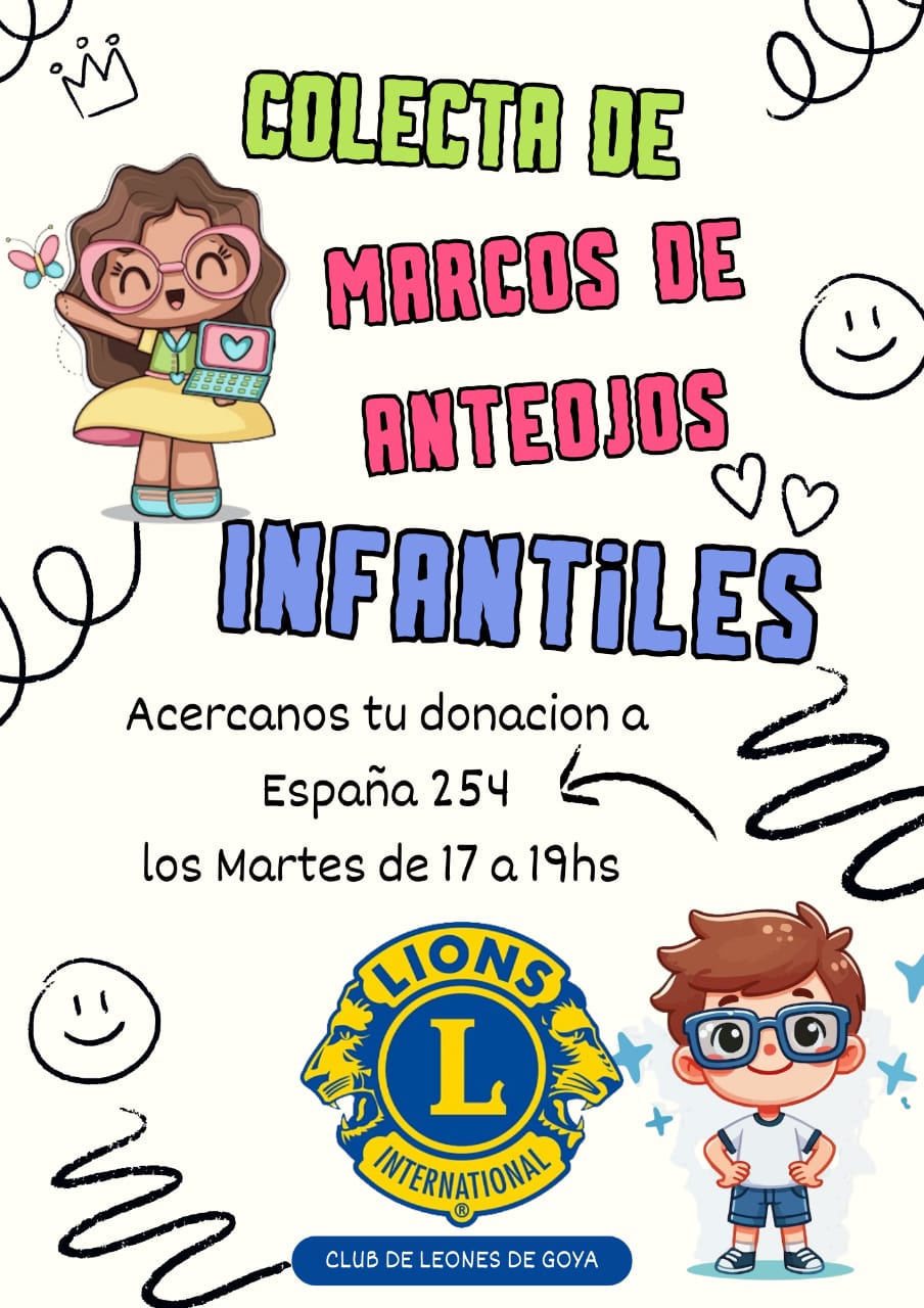 La otra propuesta solidaria de la entidad de servicio, la campaña de colecta de marco de anteojos infantiles, los que no usas, poder acercar a España 254, los martes de 17 a 19 horas.
