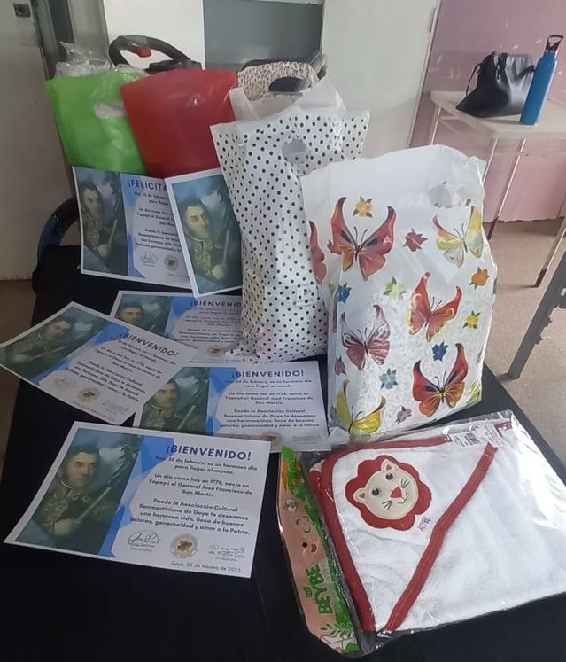 “Esta calurosa tarde del 25 de febrero, con mucho amor desde la Asociación Cultural Sanmartiniana Goya hemos llevado obsequios a los bebés nacidos en el Hospital Regional «Dr. Camilo Muniagurria» hoy, en el día del natalicio del General José Francisco de San Martín.