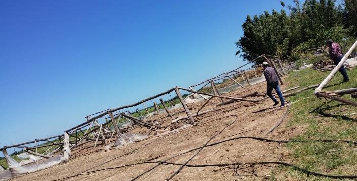 Días pasados, se había producido una fuerte tormenta en lugares muy localizados de nuestra zona rural precisamente en Paraje Ifrán. Como consecuencia del fenómeno climático, el productor Cesar Barrientos del mencionado paraje sufrió cuantiosos daños, desde la voladura del techo de su domicilio, hasta la destrucción total de 5 módulos de invernaderos que estaban con reciente plantación de tomates variedad Cherry.