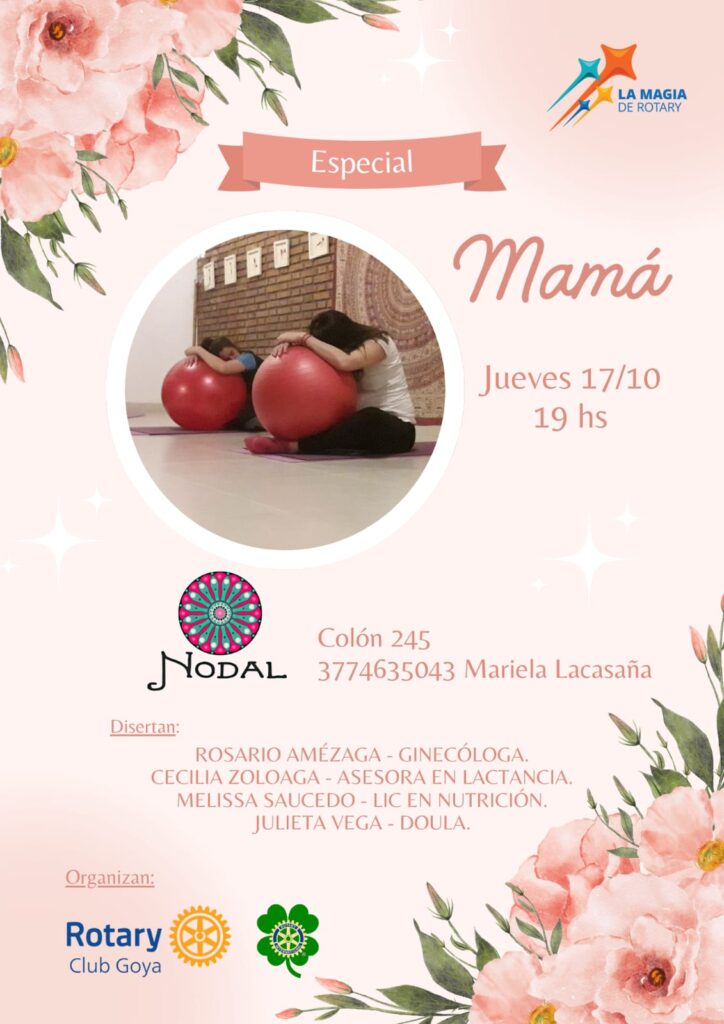 Este jueves 17 de octubre a las 19:00 horas, el Rotary Club Goya llevará a cabo un evento dedicado especialmente a las mamás gestantes y en puerperio, que tendrá lugar en el espacio Nodal, ubicado en Colón 245.