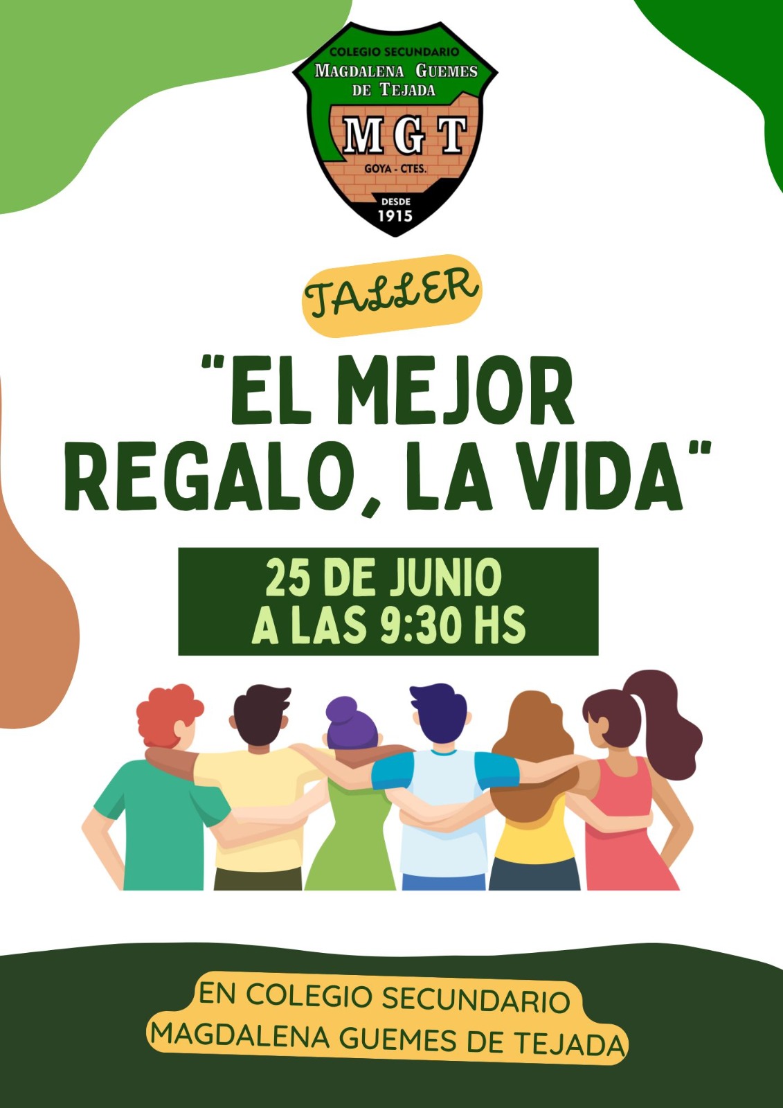 El miércoles 25 de junio desde las 9,30 horas, en el Salón del Club Huracán, el profesor y coach Gustavo López brindará una charla taller bajo el lema: “El Mejor Regalo, La Vida”. Está destinada a los estudiantes de los dos últimos años del Colegio Secundario “Magdalena Güemes de Tejada”.