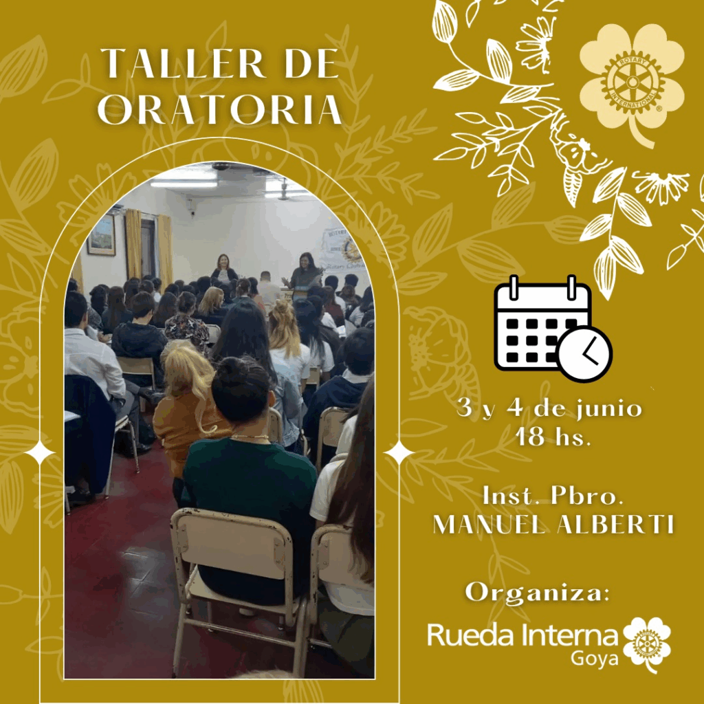 La Rueda Interna y el Rotary Club Goya, entidad organizadora del 21º Certamen de Oratoria destinado a los estudiantes secundarios, terciarios y universitarios, invita al evento a realizarse en el Salón de Actos del Instituto “Santa Teresa de Jesús”, el día 25 de junio a las 17 horas.