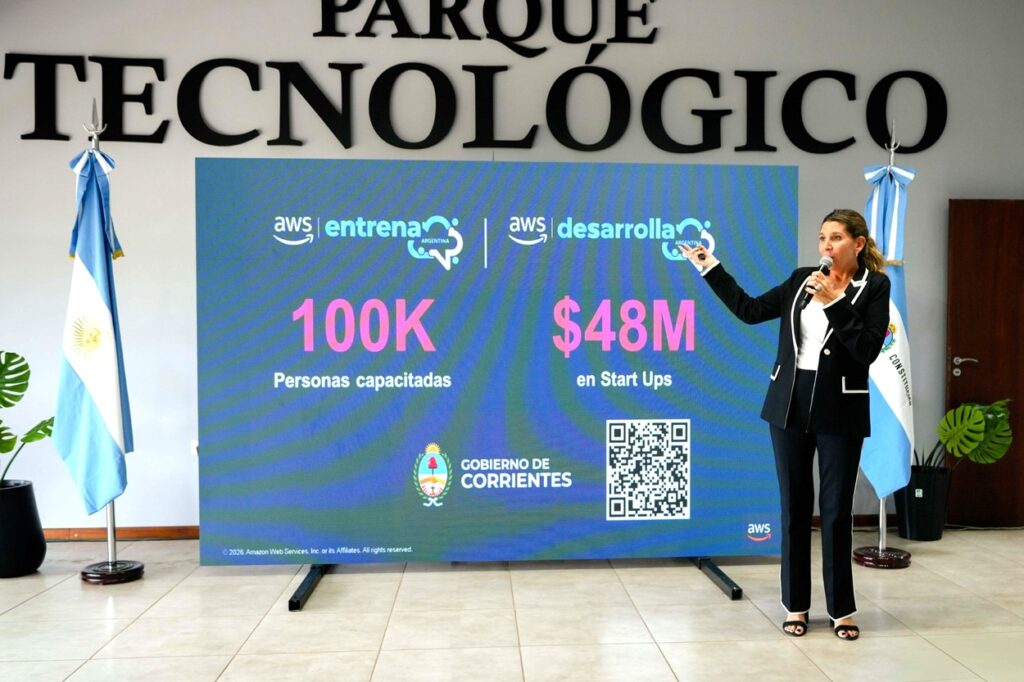 Amazon Web Services (AWS) lanzó en Corrientes dos programas que combinan formación en Inteligencia Artificial e inversión en emprendimientos tecnológicos locales. El acto se realizó en el Parque Tecnológico de la ciudad Capital, con la presencia del gobernador Juan Pablo Valdés y de Lorena Zicker, directora del Sector Público para la Región Sur de Latinoamérica de AWS, en el marco de un acuerdo público-privado que posiciona a la provincia como destino de expansión tecnológica en el país.