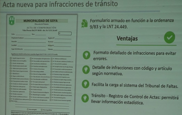 Torre detalló los ítems incorporados en el nuevo acta de infracciones, destacando su utilidad tanto para los inspectores como para los infractores. Cada situación en la calle estará identificada con su correspondiente artículo, proporcionando información detallada sobre la infracción cometida. Por ejemplo, un mal estacionamiento se identificará con el artículo 59, permitiendo al infractor conocer la razón específica de la infracción según la ordenanza o la ley nacional de tránsito aplicable en la Municipalidad de Goya.