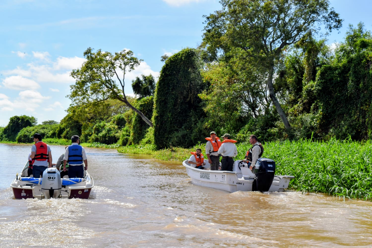 La comitiva emprendió el recorrido en lancha por el majestuoso río Paraná, navegando sus aguas abiertas hasta internarse en la desembocadura del arroyo Ysoró. Desde allí, comenzó una experiencia inmersiva por ese “laberinto verde” que caracteriza a la reserva: un entramado natural de arroyos serpenteantes, lagunas ocultas y esteros que parecen cerrarse sobre sí mismos, rodeados de camalotes en flor que cubren la superficie como un tapiz flotante.