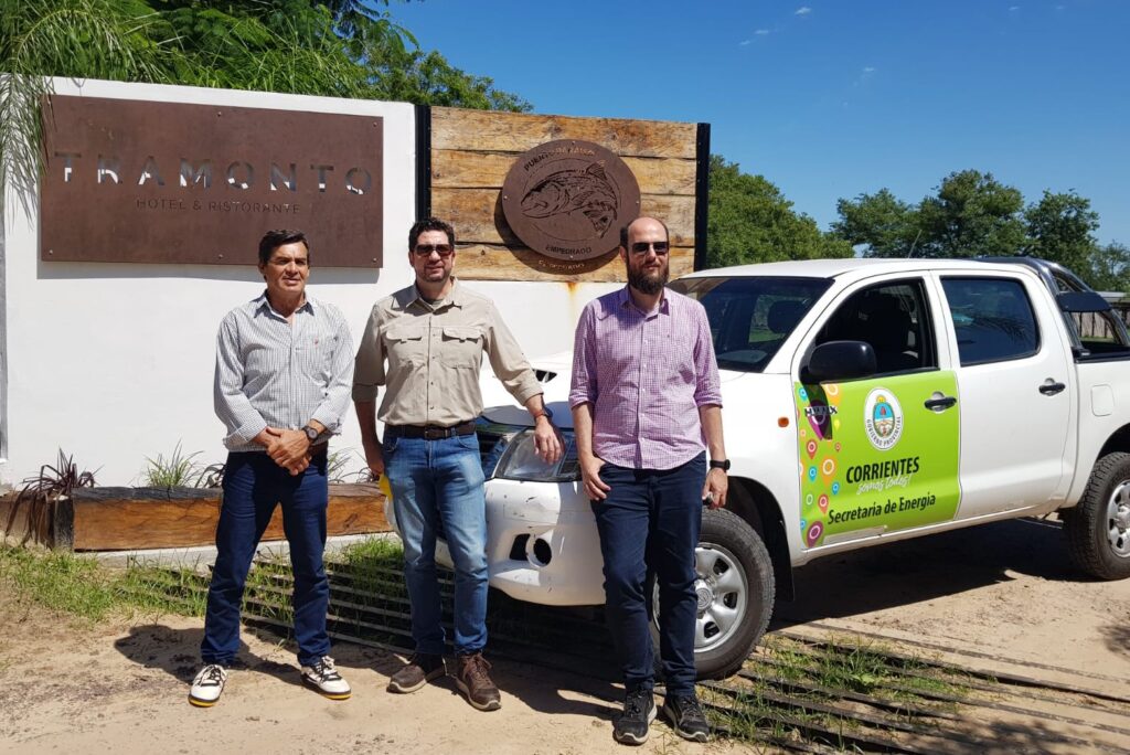 En este contexto, los ingenieros Luis Vera y Luciano Zini de Dirección de Desarrollo de Energías Renovables de la Secretaría de Energía junto a Daniel Vega del área de secretaría de Inversiones y promoción Turística del Ministerio de Turismo de Corrientes; viajaron a Empedrado a verificar las nuevas instalaciones de los paneles solares en el “Hotel Tramonto”.