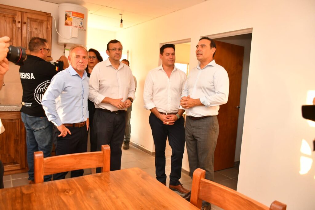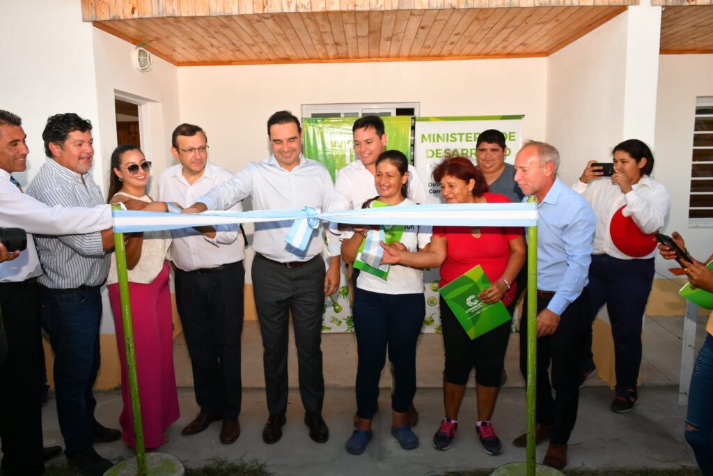 Alrededor de las 18 de la tarde, el Gobernador Valdés, junto a su comitiva, y acompañado del mandatario Municipal local Ubaldo Leiva, llegó al barrio Esperanza de Perugorría para entregar las flamantes casas a los adjudicatarios correspondientes.