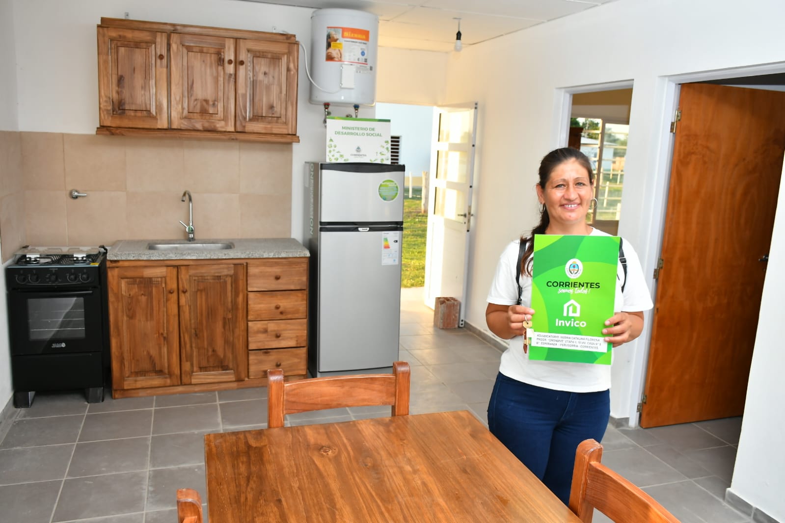 El Ministerio de Desarrollo Social se encarga de que las viviendas estén amobladas, con muebles de madera correntinas, y con electrodomésticos fundamentales para el hogar.